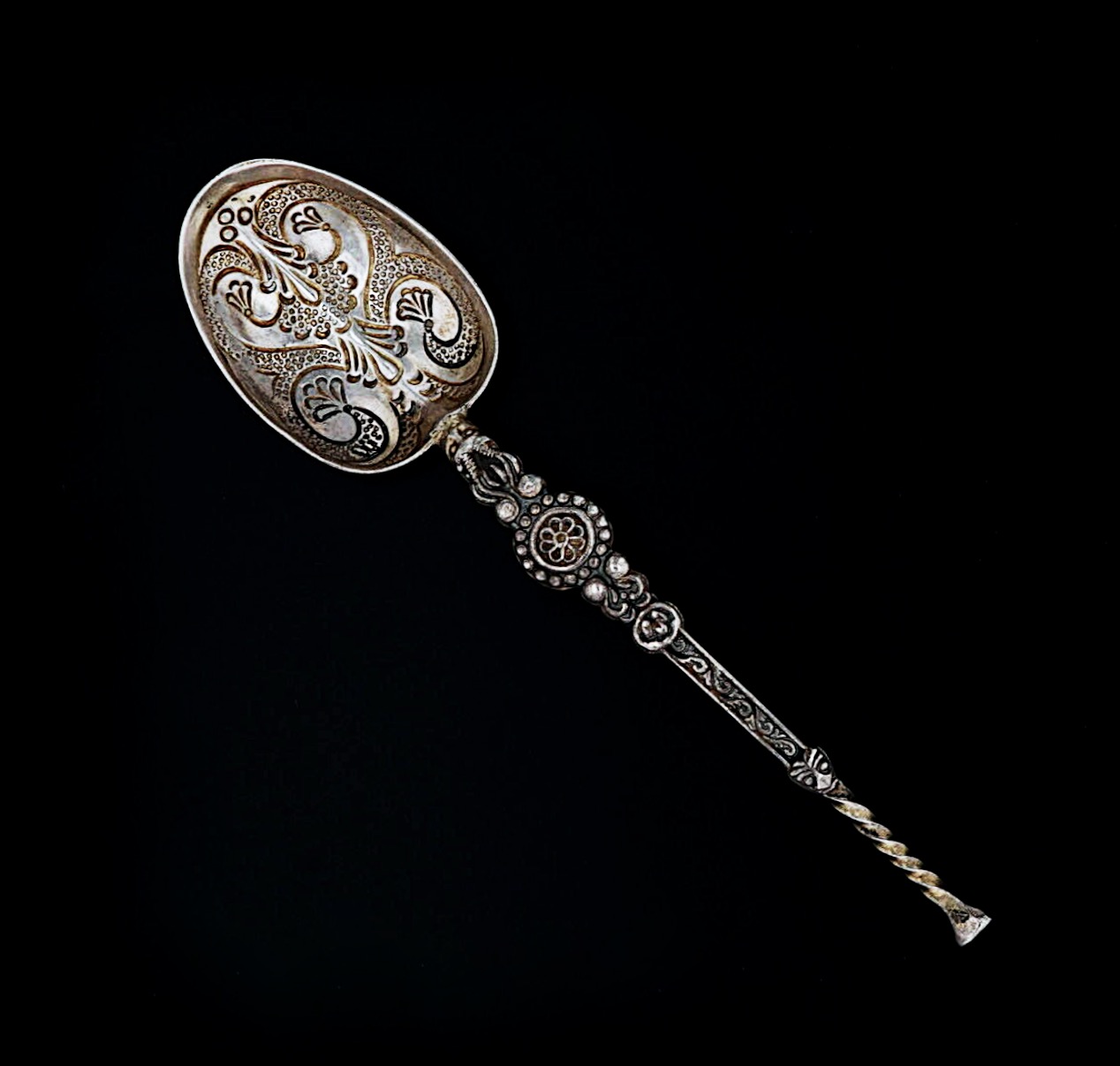 Spectacular 19th-century Hand engraved original handcrafted spoon. Ornate Floral Demitasse Spoon Sterling Silver Miller Brothers Birmingham England.