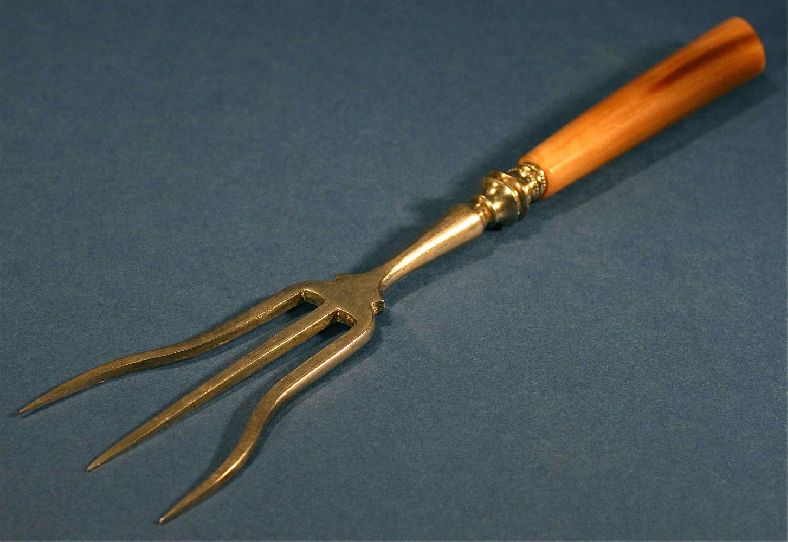 Antique Victorian Silver Horn Fork Dining Meat Tool Utensil