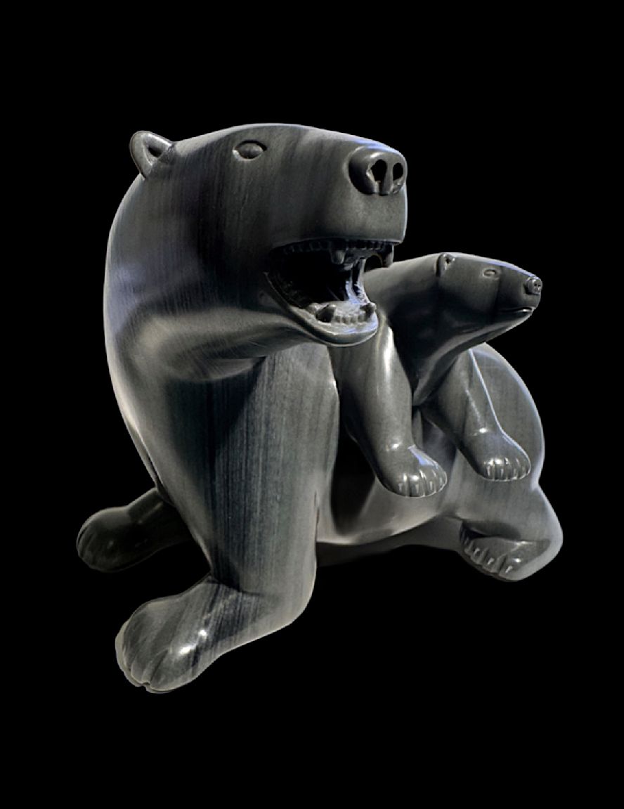 Title: Arctic Inuit Polar Bear And Cub Stone Carving Sculpture