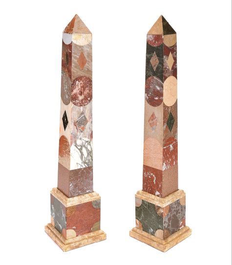 Italian Antique Inlaid Pietra Dura Colored Marble Obelisks