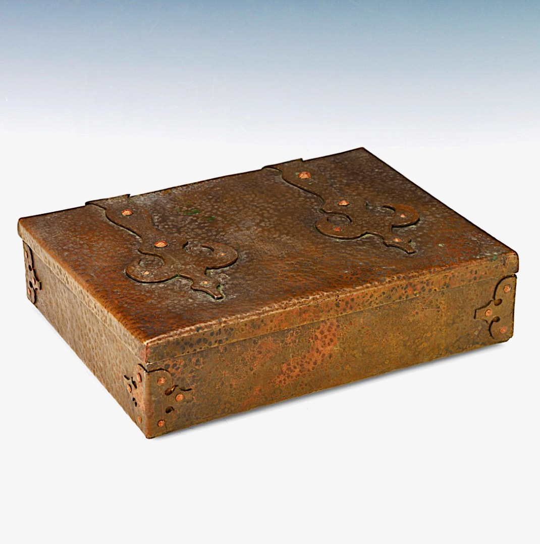 Title: Arts & Crafts Hammered Bronze Mix Metals Casket