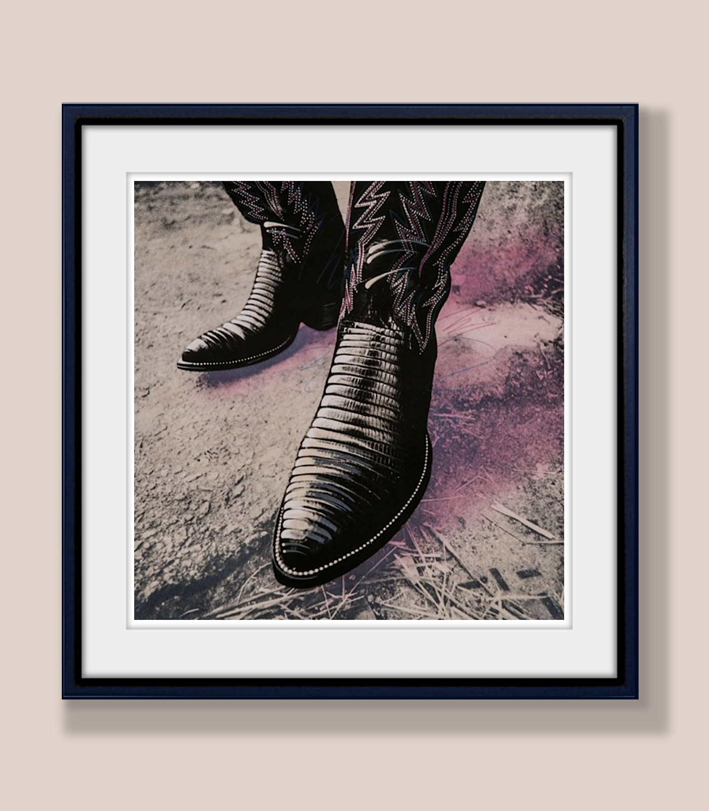 Title: Art Print of Cowboy Boots, Hand-Signed in Pencil by Artist Paul Jasmin