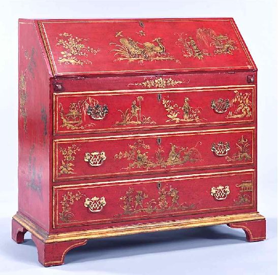 A Drop Front Desk With Chinoiserie Decoration: 39-1/2"W x 19"D x 40-1/2"H