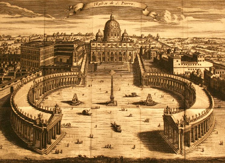 A wonderful engraving of the Vatican. This was a rare folded book insert as an Illustrated page engraving of the Vatican Square. St. Peter's Basilica and St. Peter's Square in Vatican City, Rome, Italy, historical engraving, print more..