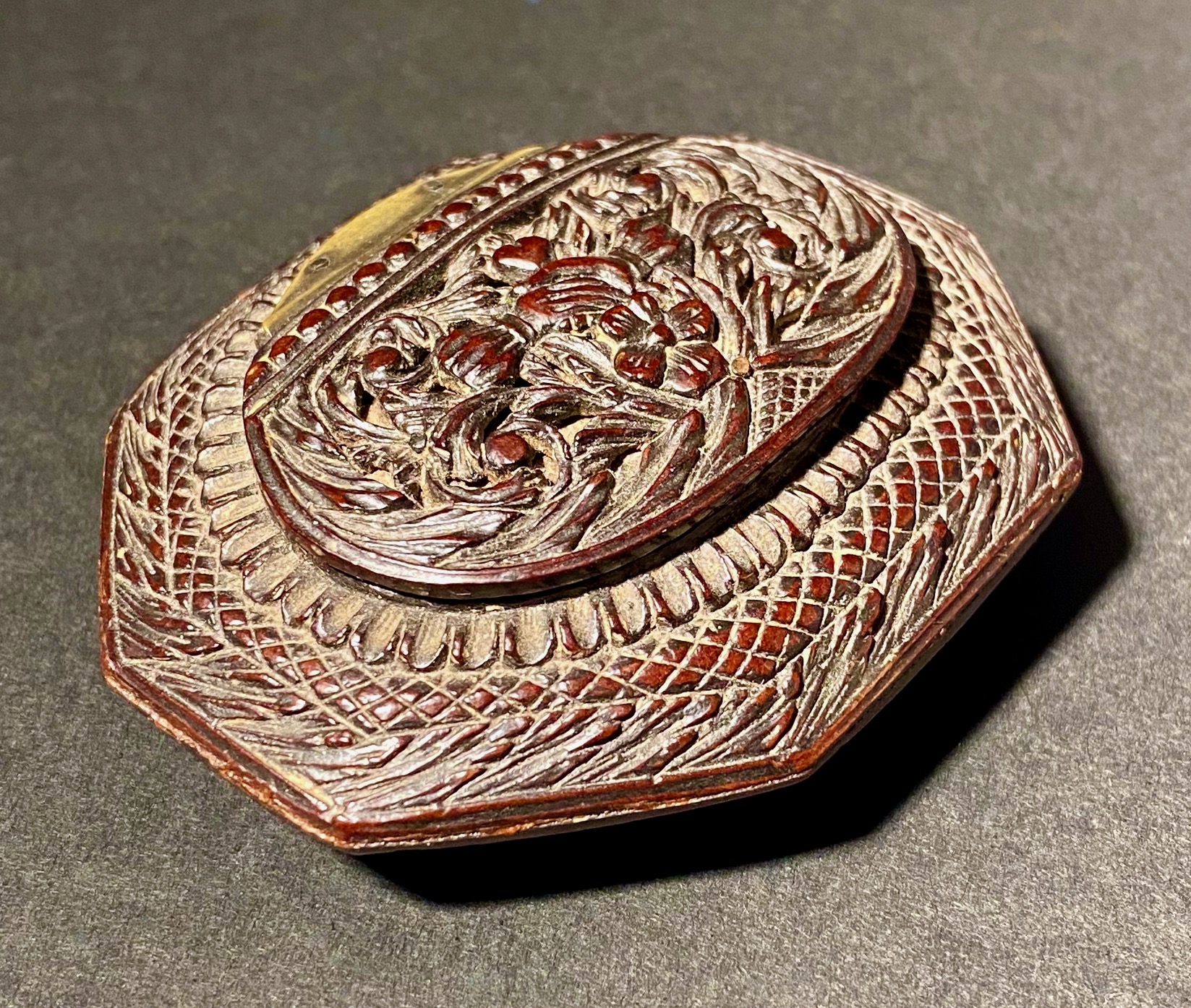 18th-Century Antique Hand Carved Wooden Snuffbox