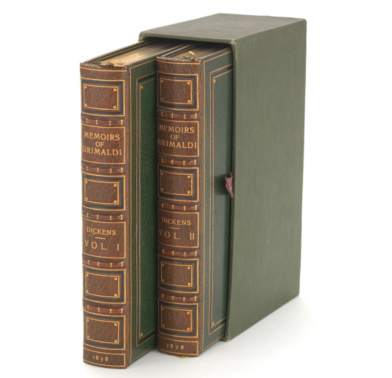 Memoirs of Joseph Grimaldi by Dickens, First Delux Edition, superb early example of a Bayntun âInlaidâ binding, Published by Richard Bentley, New Burlington Str., London, 1838, Edited by "Boz." with illustrations by more..