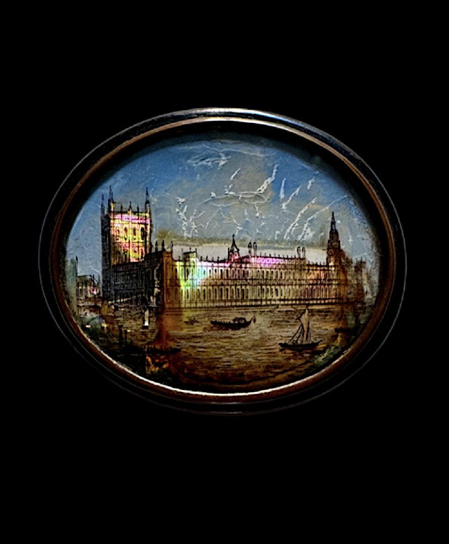 Title: Miniature Painted Venetian Landscape on Glass and Mother-of-Pearl