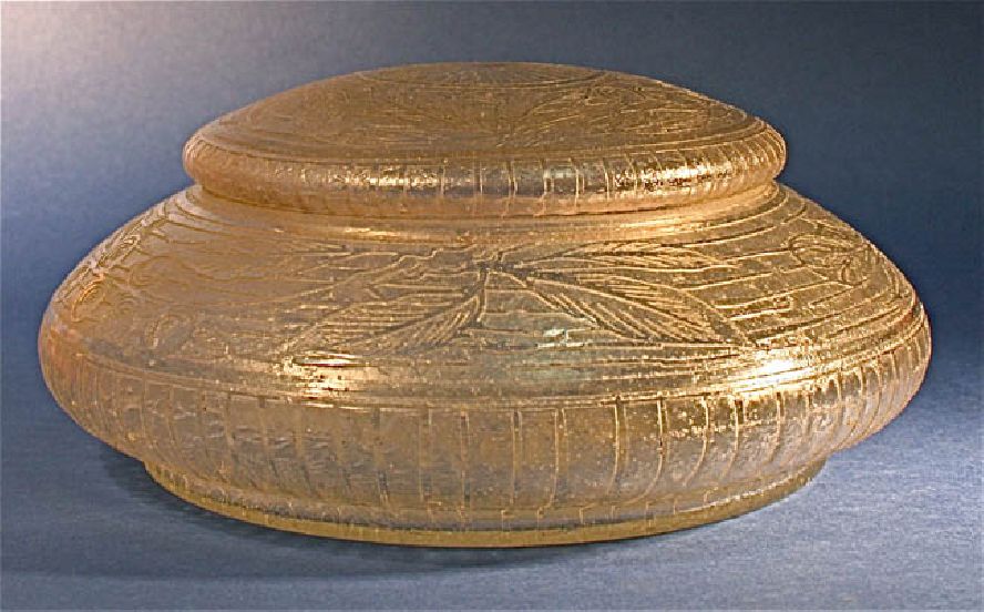 Beautiful handmade french-etched clear Glass bowl and lid.