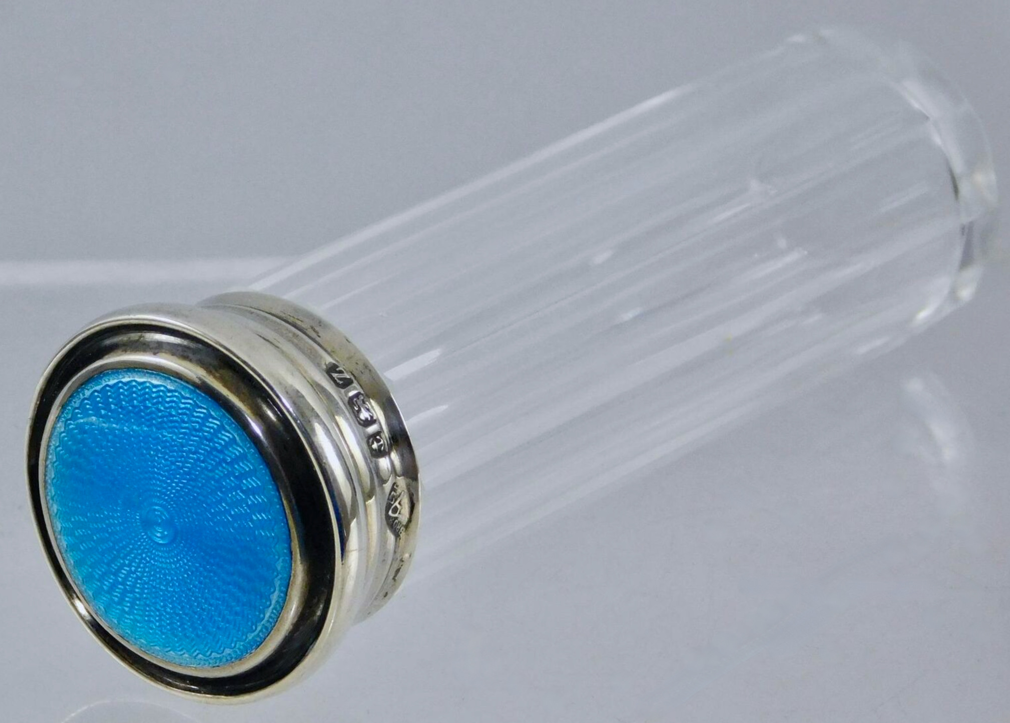 Crystal Tube Bottle Blue Guilloche Enamel Sterling silver Lid