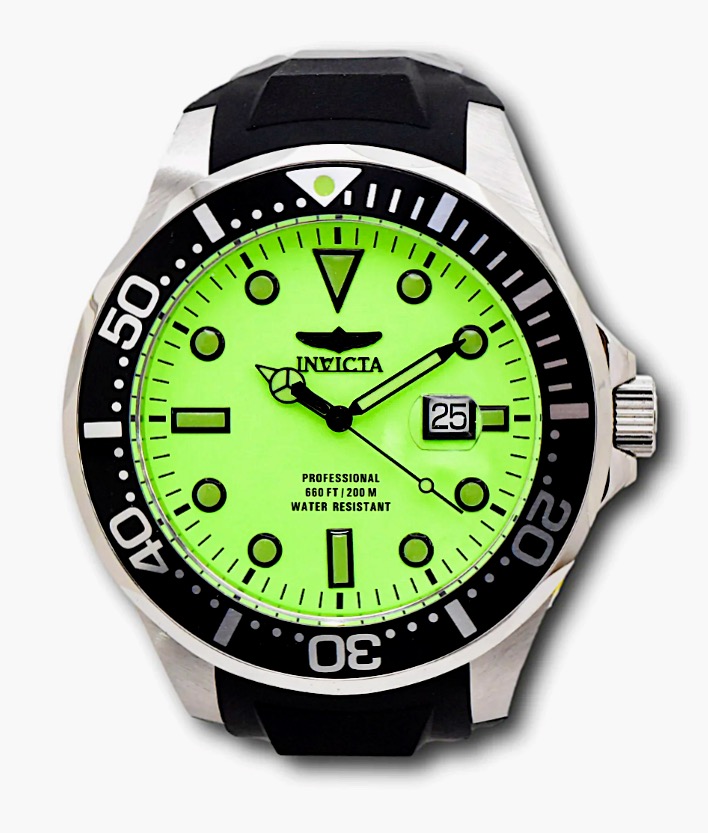Description: Brand new, never worn 60mm Invicta Menâs Grand Diver Automatic Stainless Steel Watch featuring an incredibly rare limited-edition lime green dial and a black stainless steel bezel. This eye-catching and unusual timepiece comes w more..